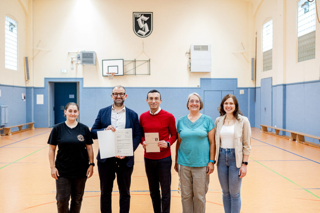 Die Stadt Frankfurt am Main unterstützt diese Vorhaben mit einem Zuschuss von mehr als einhundertdreiundneunzigtausend Euro. Um die Wichtigkeit solcher Investitionen und die Bedeutung der Frankfurter Turn- und Sportvereine zu würdigen wurde der Förderbescheid der Stadt Frankfurt am Main am vergangenen Montag, den 14.07.2025 von Oberbürgermeister Mike Josef persönlich in der Vereinsturnhalle an den Vorstand der TSV Sachsenhausen übergeben. Der Oberbürgermeister war sehr überrascht eine solche Vereinsturnhalle in diesem guten Zustand mitten in Sachsenhausen vorzufinden.