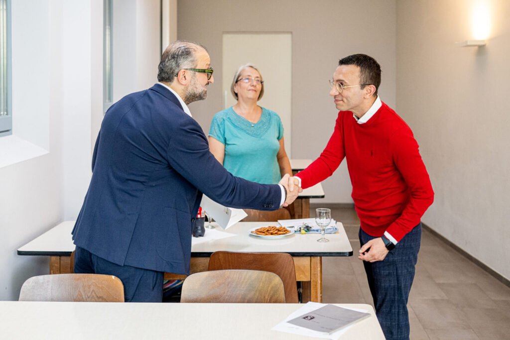 Neben den Erläuterungen zu den geplanten Baumaßnahmen, erklärte der Vorstand auch die vorangegangen Bau- und Erweiterungsmaßnahmen. Außerdem erhielt der Oberbürgermeister natürlich eine kleine Führung durch die Räumlichkeiten, die mit der offiziellen Übergabe des Förderbescheides im Foyer der Vereinsturnhalle endete.